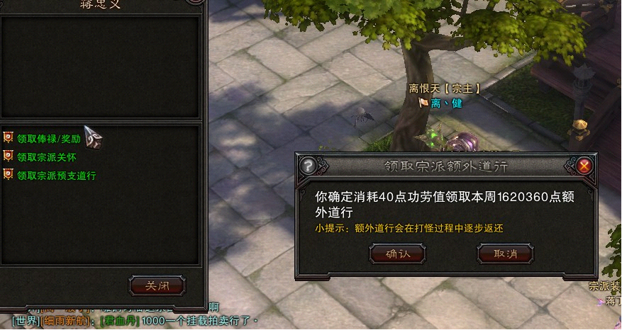 领取宗门预支道行:俗称双倍经验。异常丰厚哦。看图