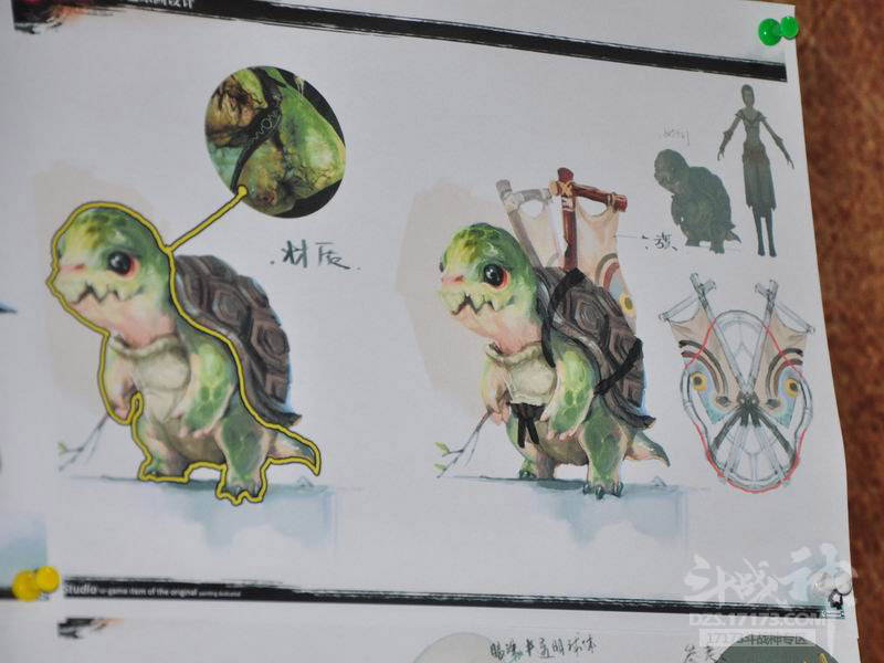 上面贴着的是一些灵兽的设计图,这只龟好像没看到过
